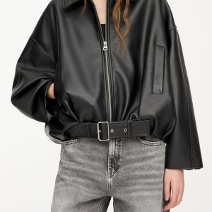 Slimming, belted, loose-fitting, versatile V-neck coat for women