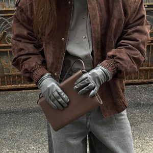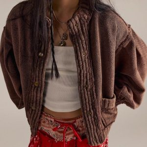 Retro Short Jacket for Women, Autumn/Winter, Stand Collar, Brown Coat