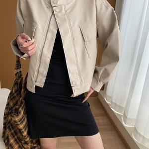 Short textured casual top, long-sleeved jacket, autumn and winter