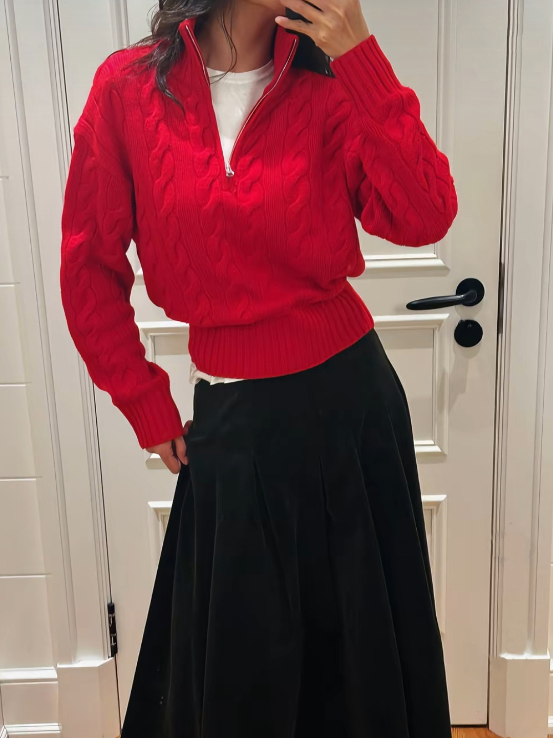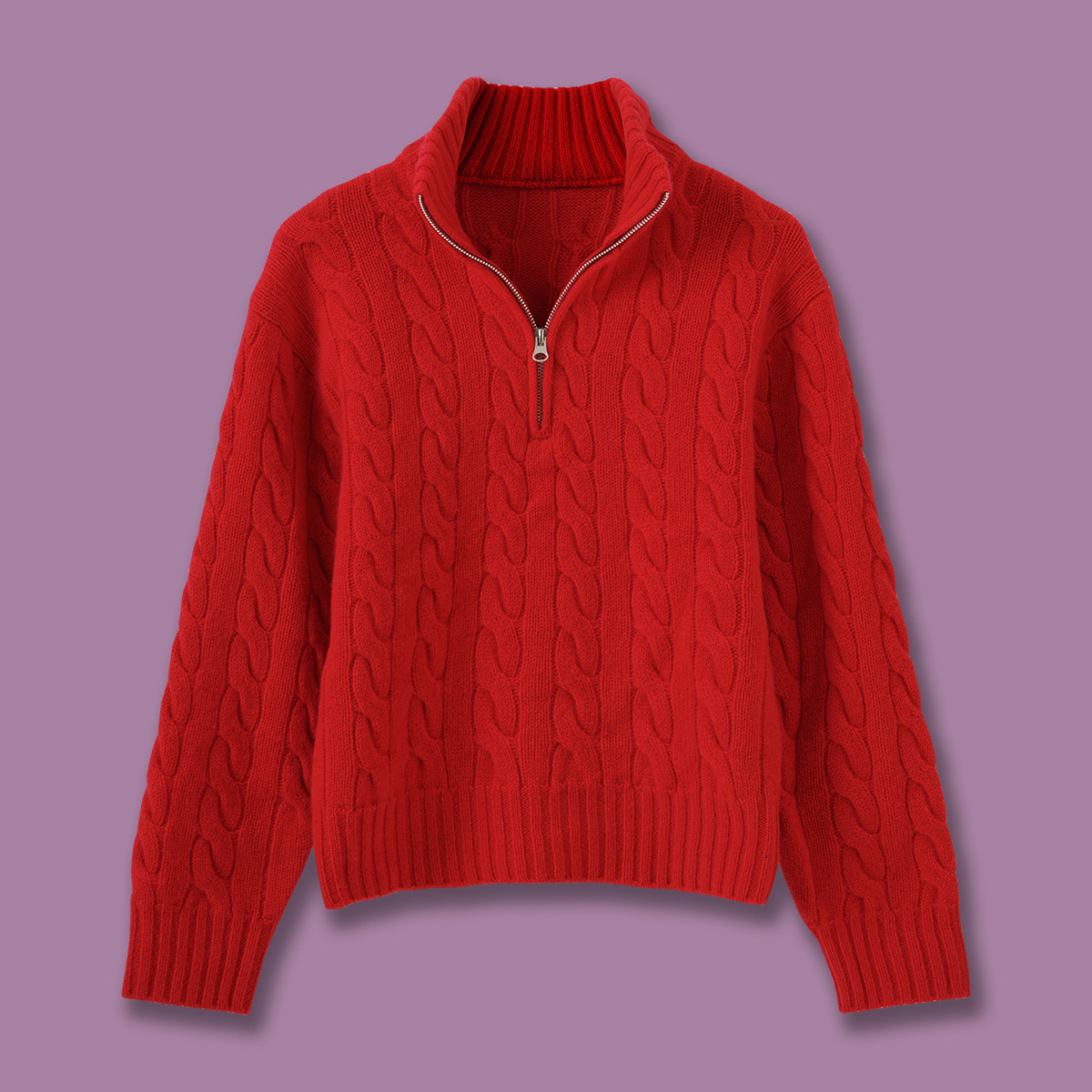 Designed for effortless elegance, this half-zip cable knit sweater blends classic texture with modern ease. The stand collar offers subtle structure while the relaxed silhouette ensures all-day comfort—ideal for layering over a crisp shirt or wearing solo on cooler days.
