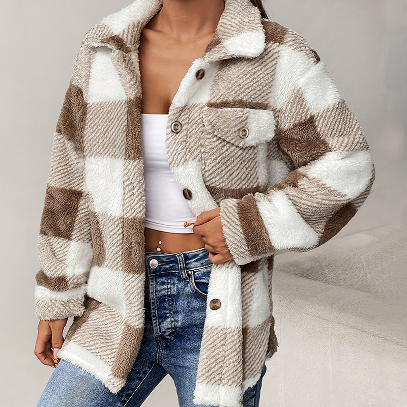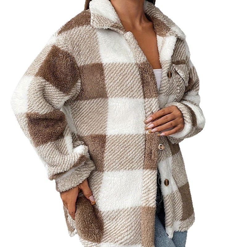 Embrace the chill in style with our Brown and White Checkered Coat, a perfect blend of classic pattern and cozy comfort. This coat is designed for the modern woman who appreciates timeless fashion with a touch of warmth.
